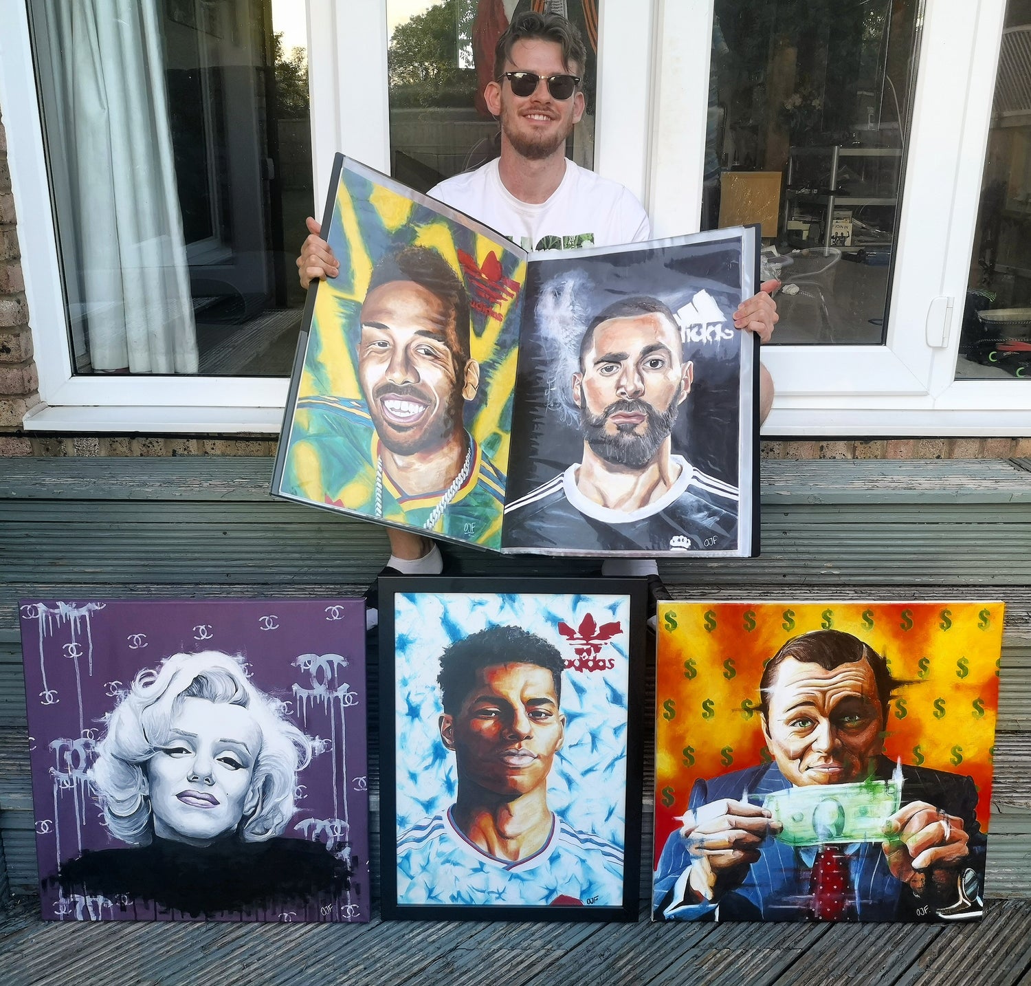 With a love for capturing inspirational people, Ollie's work focuses on icons from the worlds of Sport, Cinema and Music. He takes great pride in painting masters of their field, epitomizing their personality, talent and work ethic through portraiture. A huge football fan, much of his collection shows players from around the world, as well as characters from some of his favourite films and TV series.
